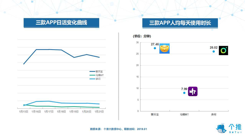 聊天宝依托子弹短信有一定的用户基础,再加上在聊天宝上不仅可以聊天,还可以浏览资讯和购物,使用时长自然会长一些。而对于多闪来说,是一款短视频社交产品,用户在上面停留的时间也会较长。