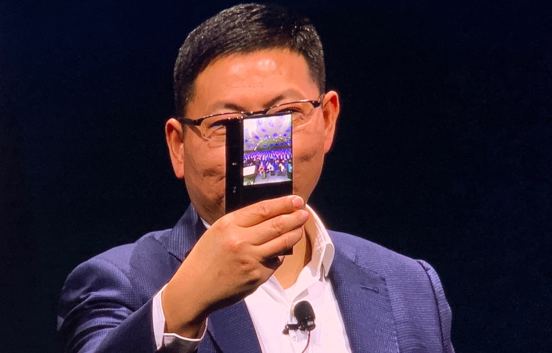 本来还纠结是留在体验区还是专访何刚,没想到何刚手上也有一台真机,并在专访提问前进行了一番操作演示。对折后Mate X 会自动切换到A 面单屏显示模式,翻转手机会感应切换到D 面显示。