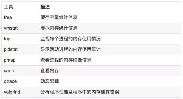 free,vmstat,top,pidstat,pmap只能统计内存信息以及进程的内存使用情况。