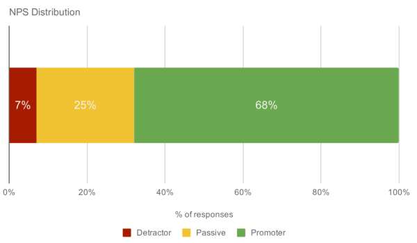 本次调查增加了一个“你有多大可能将 Go 推荐给朋友或同事?”的问题,以此来计算净推荐值(Net Promoter Score, NPS)。最终 Go 在 2018 年调查中的净推荐值是 61 分(68% 的倡导者 - 7% 的贬低者)。