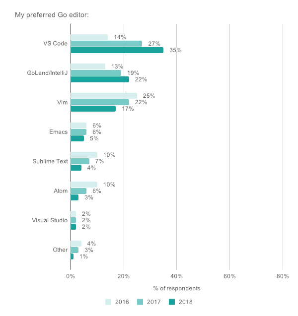 VS Code 和 GoLand 越来越受开发者欢迎,两者都是他们最喜爱的编辑器。