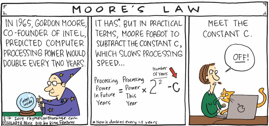 集成电路上的晶体管数量大约每 18 个月会增加一倍。