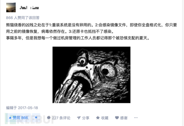 2006年肆虐中国的“熊猫烧香”,短短几个月感染超过200万人。凶残程度现在回忆起来还有人说“每一个做过机房管理的工作人员都记得那个被恐惧支配的夏天”。