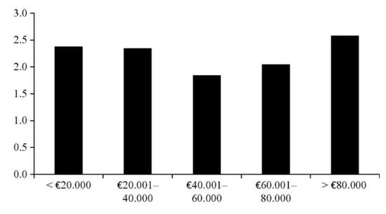 从收入来看,不管是年入2W欧元(约合15万人民币)以下还是年入8W欧元(60万人民币)以上,摸鱼时间也都大部分高达2小时以上。