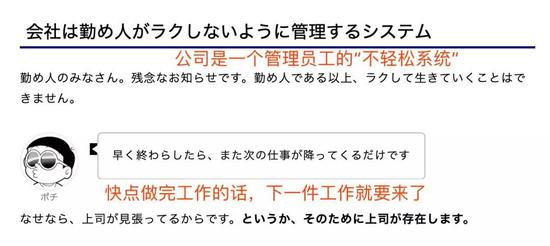 一方面他们希望偷奸耍滑,另一方面却梦想升职加薪。他们无法离开系统,更不抛去工作选择反抗,只能选择用这种无声的反抗去面对工作。