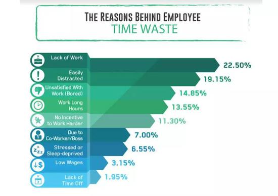 这份针对全美各行业2000名雇员的报告,“浪费时间的理由”这个项目中的调查结果和罗兰·保尔森这份“Empty Labor”调查结论完全一致——Lack of work——依旧还是“工作量不饱和”。