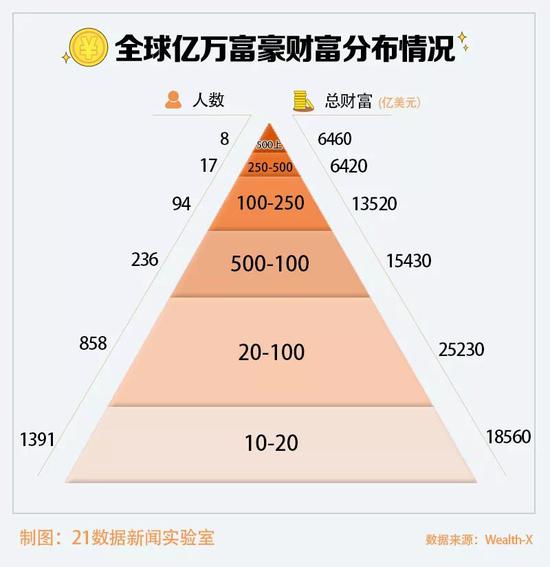 相反,10-20亿美元富豪人数为1391人,占全部富豪数的53.4%;但财富占比仅为22%。