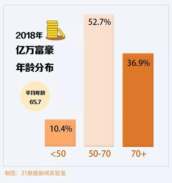 有趣的是,中国亿万富豪格外年轻,他们的平均年龄仅是56岁,而全球平均水平为66岁。另外,中国有22%的富豪年龄在50岁以下,全球仅有10%。