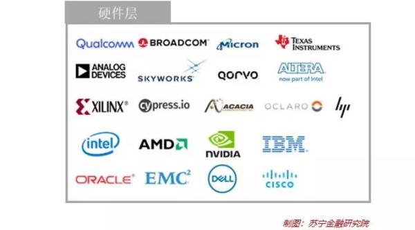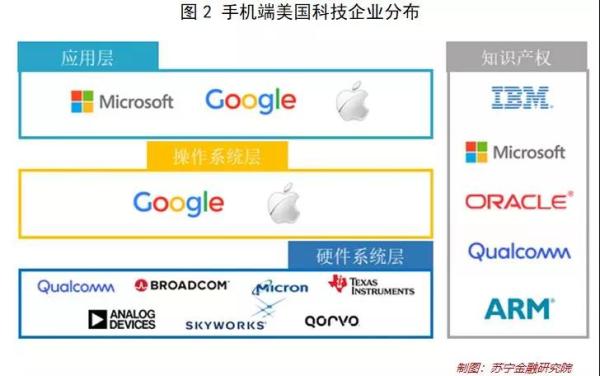 下面,我们具体来看一下手机端有哪些有实力的美国科技公司,以及他们所在的技术层。