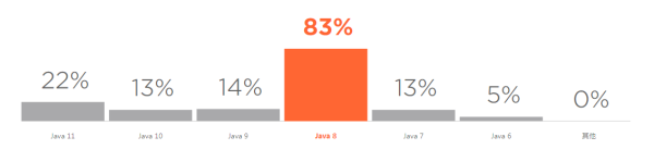 可以看到,虽然 Java 10 和 11 越发流行,但 Java 8 仍是使用最多的版本。