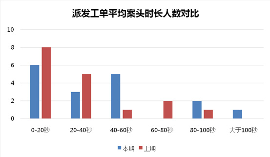 对策实施一个月后,对比上月同期,1月在线客服工单平均案头时长40秒以内的人员逐步增多,人员占比从现已不存在案头时长超过100秒的电子专员,在线客服的工单平均案头时长已得到有效管控。