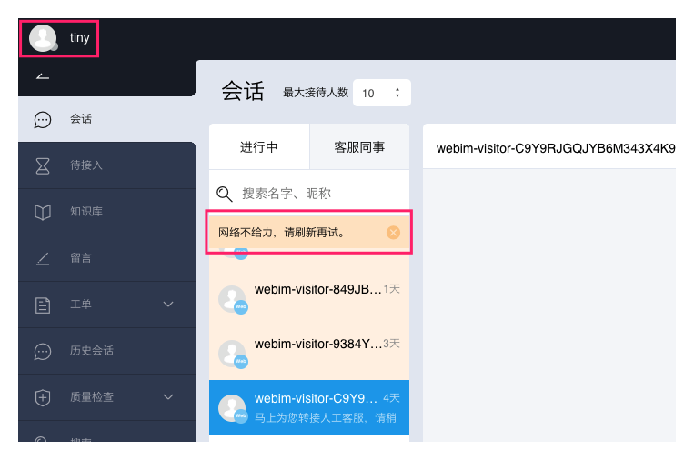 当websocket断开连接的时候,客服状态标识变成离线,同时缓存断开前状态,待连接恢复后,自动恢复到断开前的状态。