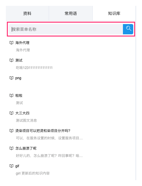 客服可按照个人使用频次,对公共常用语和个人常用语进行“置顶操作”,设置【置顶常用语】。
