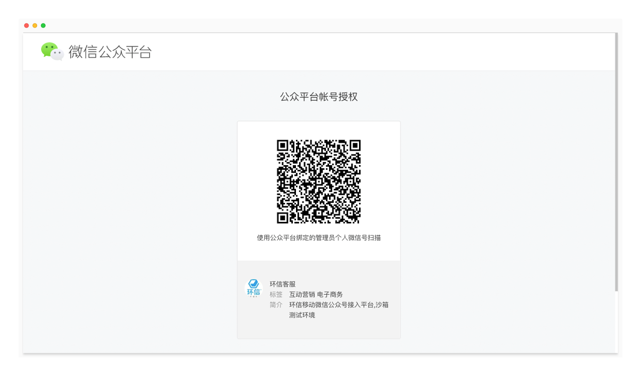 4、 点击“登录授权”,进入微信公众平台,扫描二维码授权第三方平台“环信移动客服”。