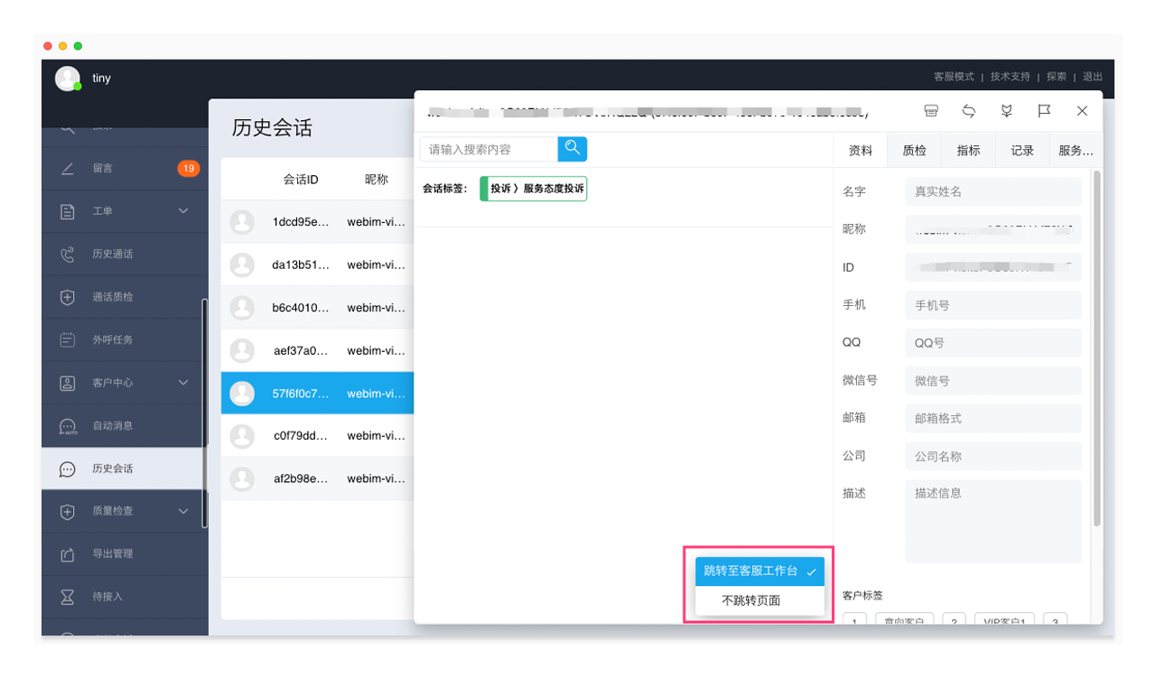 管理员-历史会话详情,新增设置“点击【回呼】按钮”模式