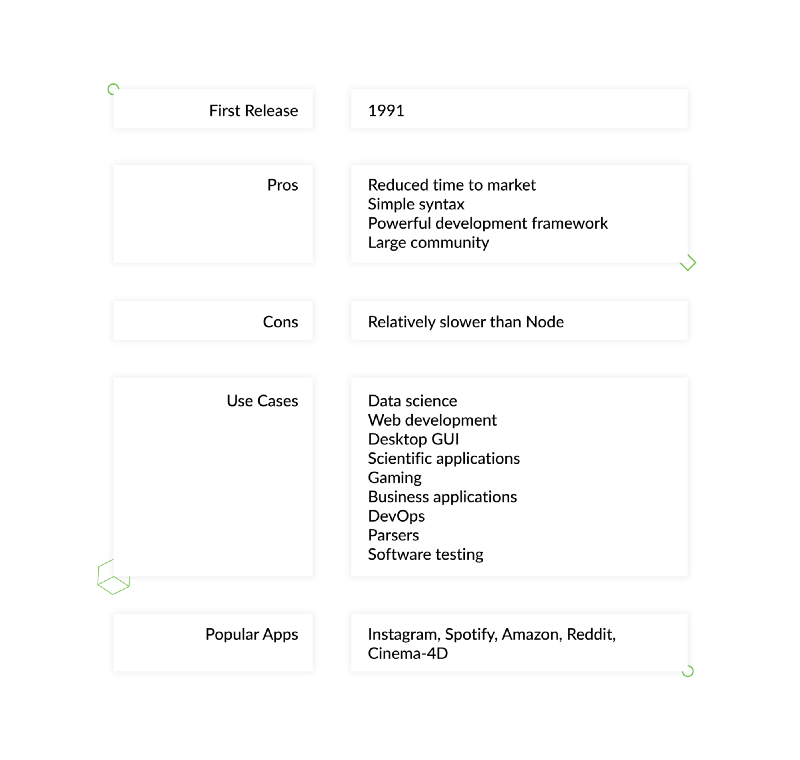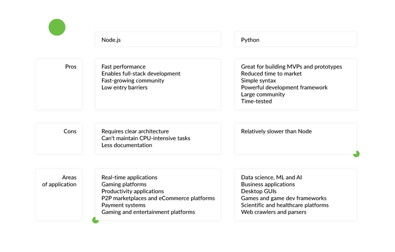 正如你所看到的,Python 与 Node.js 各有其优缺点,它们用于不同类型的项目。因此,当你在 Node.js 或 Python 之间进行选择时,你需要查看所有优缺点,以确定哪一个最适合你的项目应用程序。