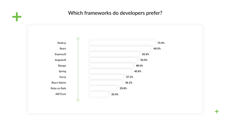 你只需要一个了解 JavaScript 的开发团队,他们便可以完成整个应用程序的前端和后端。这是降低成本的一种方法,因为你很容易找到 JavaScript 开发人员,并且你不需要那么多的开发人员。