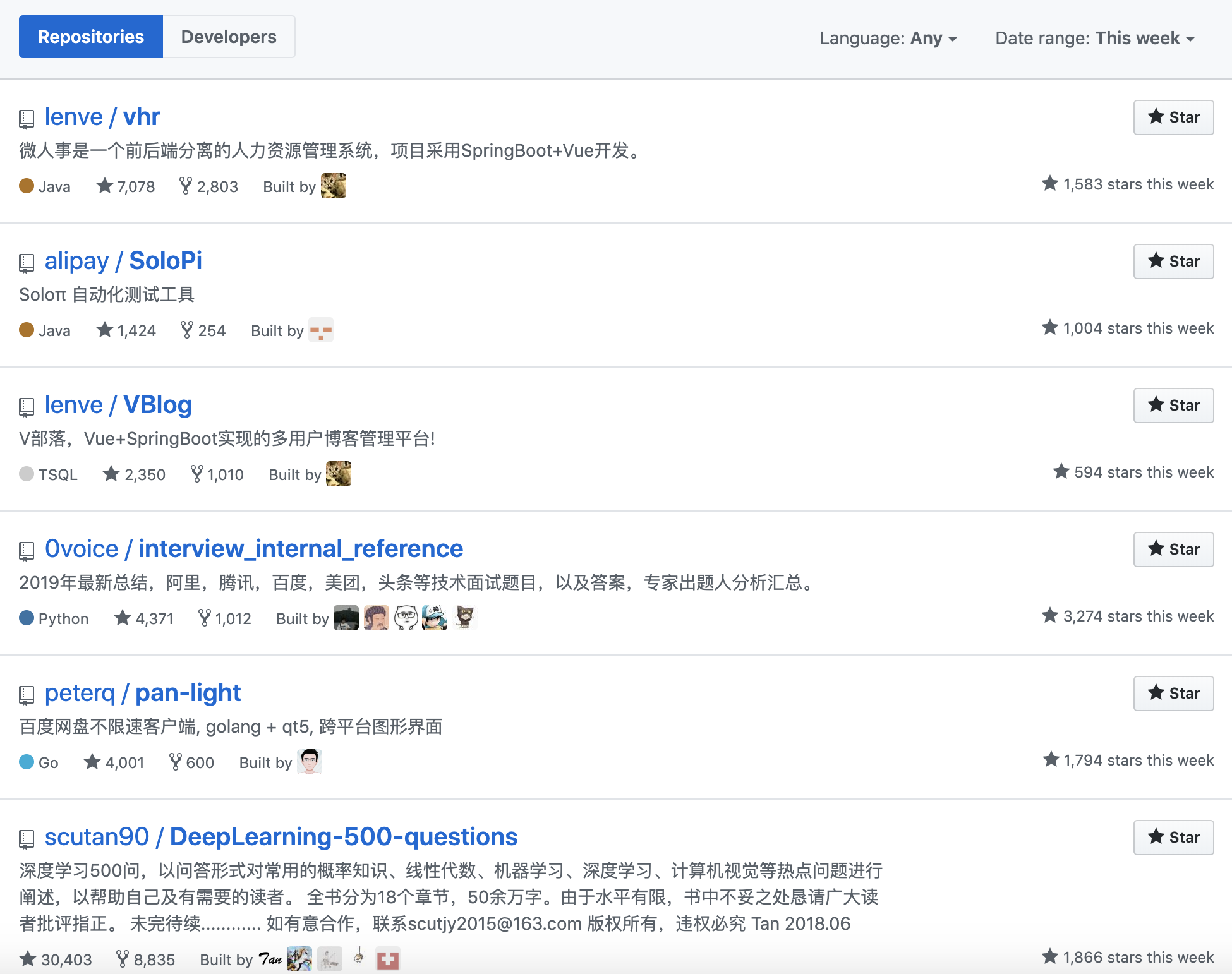 可以看出,本周排行前 6 的项目全部为中文项目。