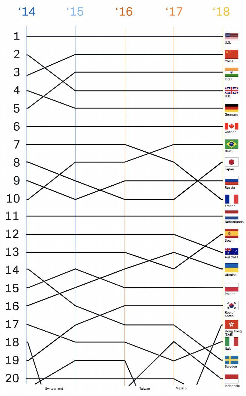 即便是在中文互联网并不算发达的年代,国内开发者们都很少有不知道 GitHub 的,何况是现在中国市场已经成为各大开源基金会眼中的世界第二大市场。随着中国开发者规模的持续膨胀,在可预见的未来,GitHub 的中文仓库会越来越多。根据 2018 年 GitHub 年度开发者报告,中国开发者的贡献从 15 年开始就稳居第二。
