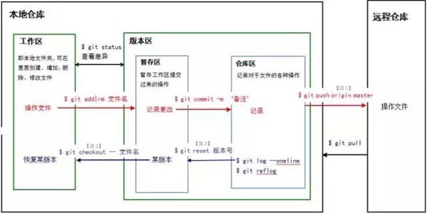 本地仓库是对于远程仓库而言的。本地仓库 = 工作区 + 版本区。