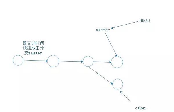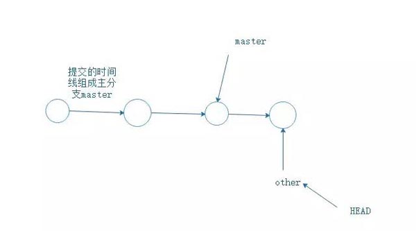 创建一个other的分支,通过other提交,虽然时间轴向前走了,但是主分支master还在原来的位置。