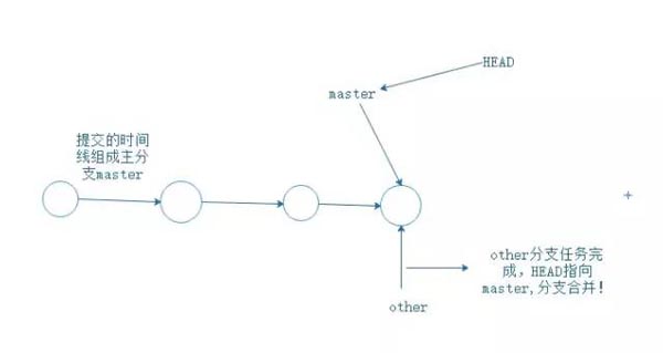 在没有其他分支插进来时,只有一个master主分支。每次你git push -u origin master 提交就是增加一条时间轴,master也会跟着移动。