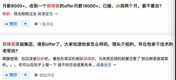 打开知乎搜索柬埔寨、菲律宾等关键词,很多提问都是关于高薪聘请,已拿到 Offer,问要不要去的。