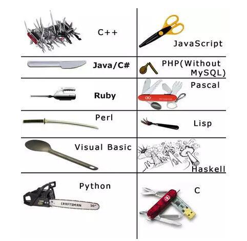 比较编程语言是一件非常复杂的事,因此我们创作了很多好玩的图片或段子用来表达对各种编程语言的定义,本文就以下图开始吧: