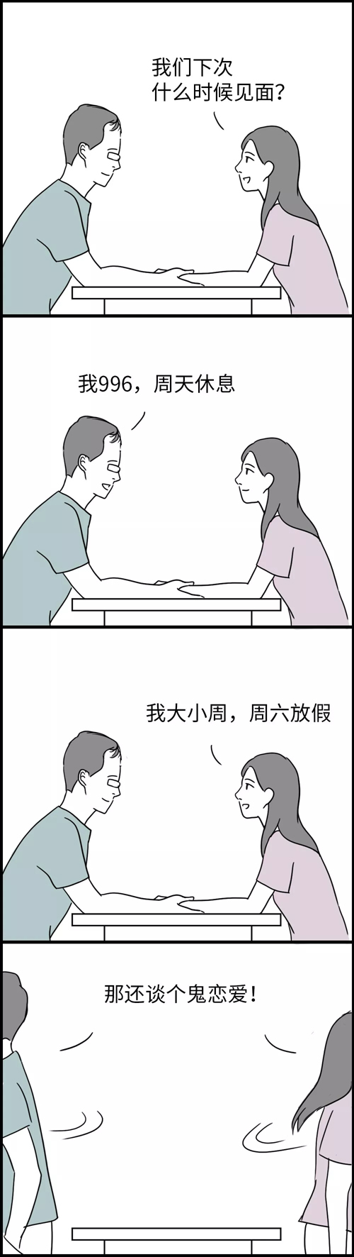 不过,如果真的要谈的话也不要太害怕,在能挤出来的时间里,互联网人还是很正常的,没准还因为时间比较短而加倍珍惜。