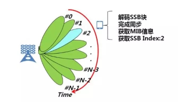 广播波束最多设计为N个方向固定的波束。通过在不同时刻发送不同的波束完成小区的广播波束覆盖,UE通过扫描每一个波束,获得最优波束,完成同步和系统消息的解调。
