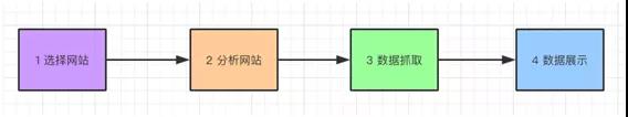 在网络爬虫之前需要根据达到的目标进行构思,包括:选择网站,分析网站,数据抓取,数据展示。