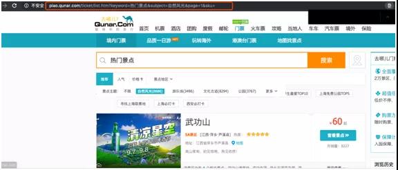 首先,我们要找一个数据源能够获取全国旅游信息。这里有一个思路就是订票信息,哪些景点的订票比较多,那么这些景点所在的城市就越热门。类似的售票网站比较多,例如:携程,去哪儿,途牛旅游之类的。