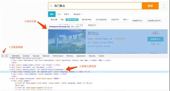由于景点信息放在一个列表中,所以找到列表所在的元素,它放在 id 为“search-list”的 div 中。