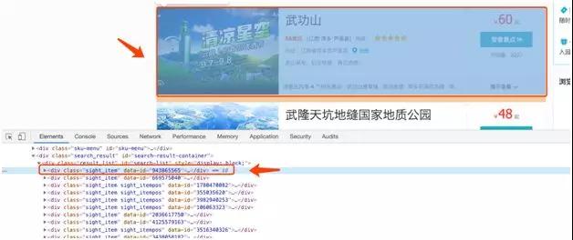 获取了列表元素之后,再来看看每一项旅游纪录中的值如何获取。其内容放在”sight_item”的 div 中。