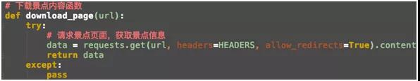 定义一个下载景点内容的函数,这个函数接受 URL 作为参数,然后通过 requests 对象下载景点内容。
