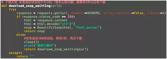 由于下载信息可能会遇到网络问题,导致下载失败。所以,我们需要定义一个下载失败函数,在下载不成功的时候重试下载。
