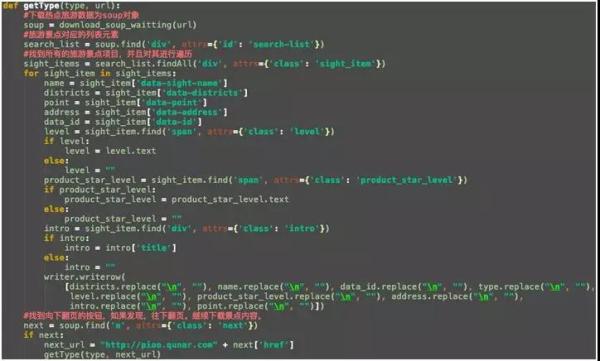 好了,到此我们定义了文件,下载函数,重试下载函数,分类搜集函数,现在要定义最重要的 HTML 解析函数了。它的输入参数是景点类型和 URL 地址。