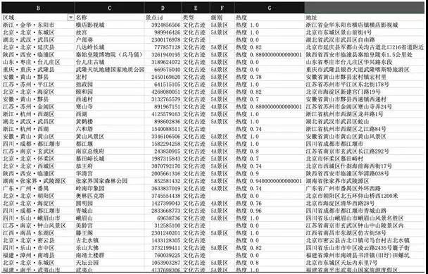 解析具体景点信息:名称,区域,省市,热度,地址等等。