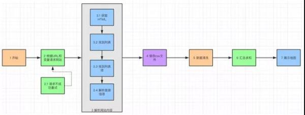 展示程序主要完成,数据清洗,汇总求和以及展示地图的工作。这样前面的爬虫和后面的分析展示就连成一体了。