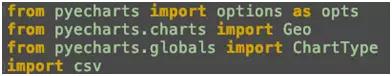 首先我们依旧要引入几个 Python 包,如下。其中 Geoopts 和 ChartType 都是用来展示地图用的。
