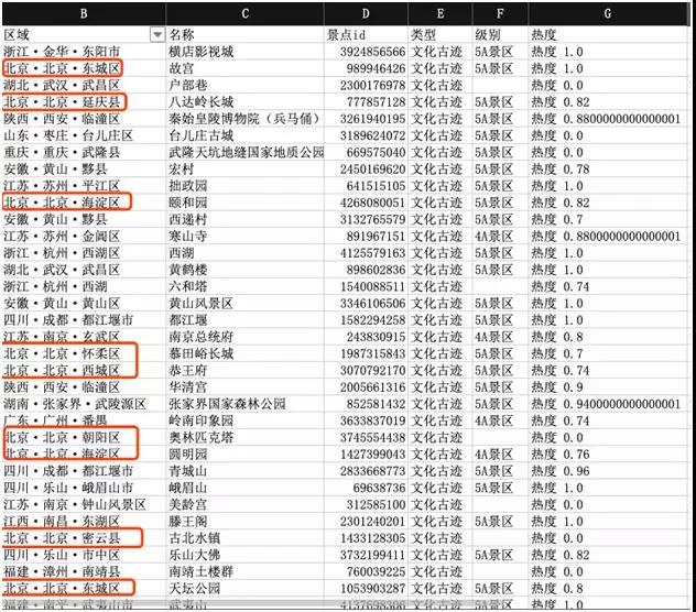 如果我们将这些景点对应的区域的热度进行汇总,就可以知道哪些区域对应的景点热度了。