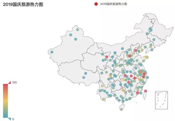 从图上可以看出北京,沿海地区(福建,广州),江浙地区,甘肃地区是国庆期间比较热门的景点。中部地区的武汉,由于军运会将至,也成为了旅游的热门城市。