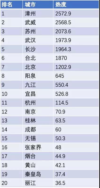 再来看看,TOP 20 的旅游热点城市,如下图:
