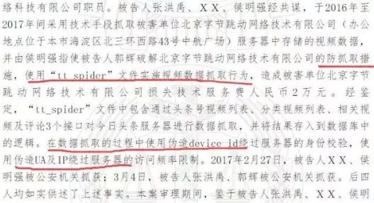 从文书描述来看,修改 UA、修改 device id、绕开网站访问频率控制这是写爬虫的基本,这些技术手法反而成了获罪的依据。