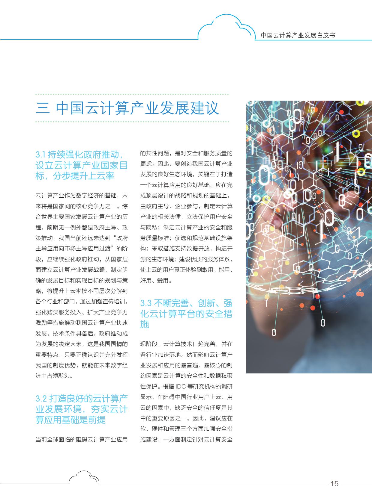 云计算已经成为中国产业数字化转型、智能化升级的技术底座,《中国云计算产业发展白皮书》的发布为我们全面了解我国云计算产业实力和数字经济水平提供了有益的参考。白皮书从国际国内的发展分析入手,对中国云计算产业发展状况与未来趋势进行了深入分析,并对中国云计算产业发展提出了富有建设性的建议。