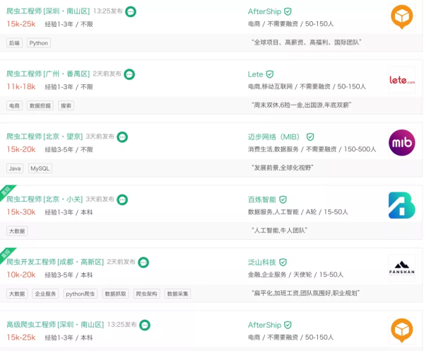 网络爬虫技术为数据收集者提供了极大的便利,也给专业网络爬虫公司带来巨大的收益。所以,很多公司都会有爬虫部门,或者负责开发爬虫的团队,在招聘网站上,也随处可见关于"爬虫工程师"的招聘贴。