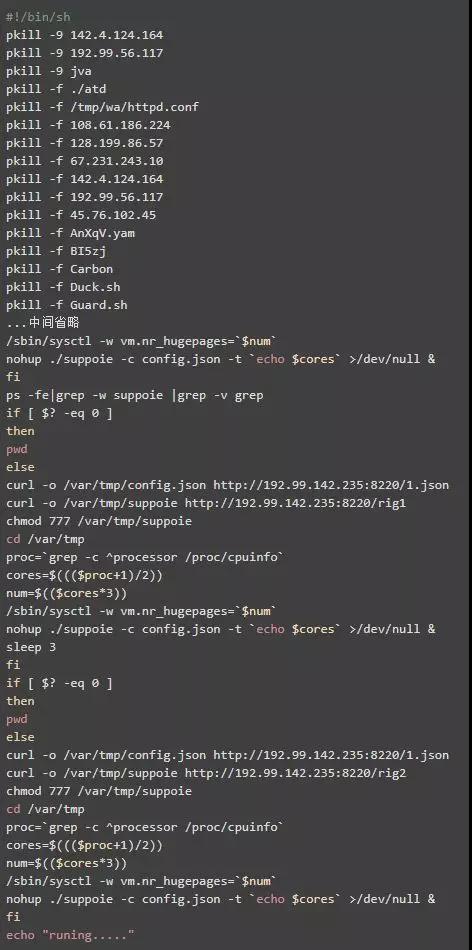 好尴尬,但是心思细腻的我早知道没这么简单,肯定只是伪装,crul 过去是下面的脚本,过程就是在挖矿: