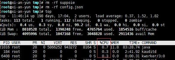 算了,大度的我先不和你计较。干掉这两个文件后再查看 Top: