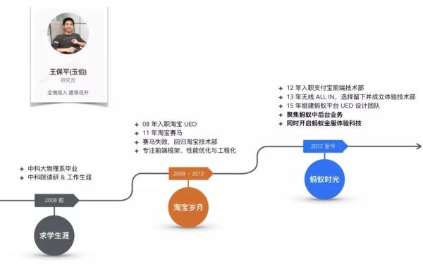 整个经历分三段:一是求学生涯,然后是在淘宝的岁月,以及现在的蚂蚁时光。