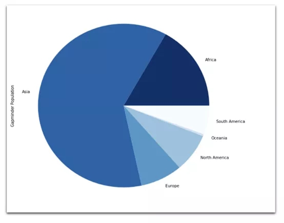 data[data['Year'] == 2018].groupby( ['Continent'] )['Gapminder Population'].sum().plot( kind='pie', figsize=(12,8), cmap="Blues_r", # defaultsto orangish )